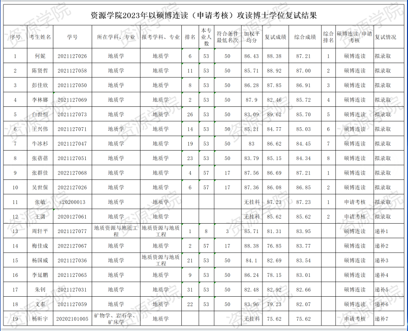 现将麻豆网 2023年以硕博连读、申请考核攻读博士学位复试结果予以公示,详情请见附件,公示时间:4月13日-4月17日。如有异议或疑问,请于公示期内与学院联系,电话029-82339065。