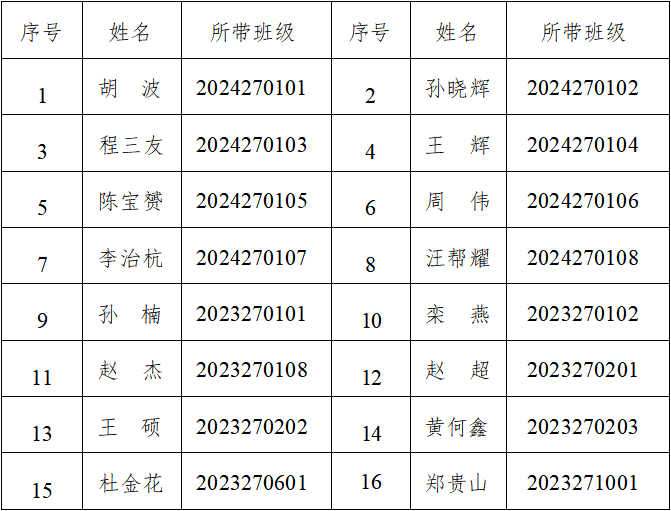 2024-2025学年本科生班主任。2024年9月2日学院班主任工作考核领导小组对考核及聘任结果进行最终审定,现予以公示。