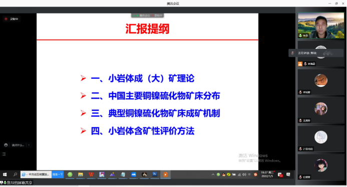 2022年1月5日19:30,我院“齐心抗‘疫’不停研”第七场报告暨“资源论坛”第一百六十讲线上报告顺利举行。此次特邀焦建刚教授作题为“小岩体成(大)矿理论与铜镍矿找矿勘查应用”和肖良副教授作题为“植物化石的古地理和古CO2指示意义”的学术报告。我院师生共计190人参加本次线上学术报告。报告由副院长李佐臣教授主持。