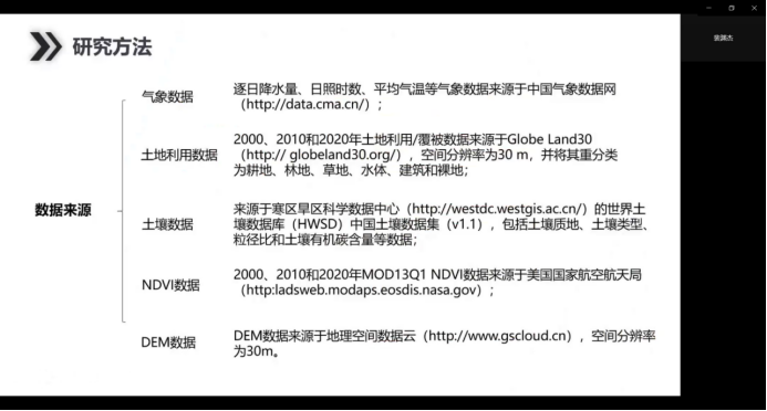 裴渊杰同学从生态系统服务的国内外研究进展开始,阐述研究内容和研究方法,总结延安市生态系统服务时空格局变化,识别出延安市生态系统服务热点区,并基于不同尺度对延安市生态系统服务权衡与协同关系进行分析,表明延安市生态系统服务权衡与协同关系的尺度效应明显,不同尺度上生态系统服务权衡协同关系具有明显差异。
