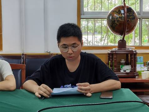2020级研究生第二党支部书记贾子续从如何加强党支部战斗堡垒作用和发挥党员先锋模范作用方面作了交流发言。他表示,支部将继续在学院党委的指导和率领下,认真贯彻落实“三会一课”制度,进一步强化党员教育管理,努力做到“七个有力”。