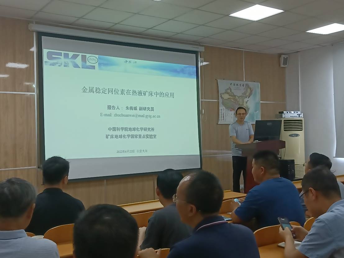 二楼伯声报告厅举行。此次特邀中国科学院地球化学研究所朱传威副研究员作题为“金属稳定同位素在热液矿床中的应用”以及周正兵副研究员作了题为“扬子板块东南缘铅锌矿床成矿机制”的学术报告。我院师生参加了此次报告会。报告会由副院长李佐臣教授主持。