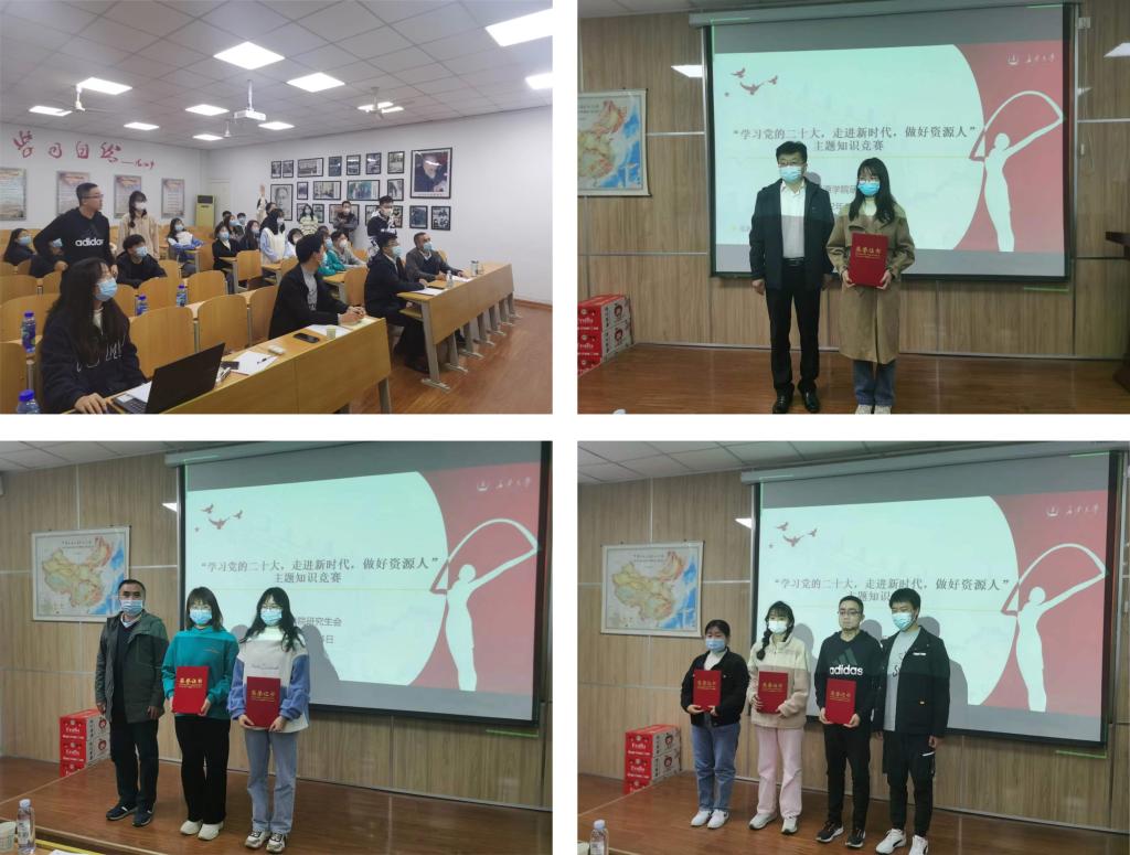 活动最后黄喜峰书记作总结讲话。他首先对本次活动获奖队伍表达了祝贺,同时对同学们积极学习党的二十大精神并以知识竞赛方式展示学习成果予以了肯定。黄书记强调,学习党的二十大精神,同学们要深刻把握其要义与内涵,要认真研读报告;当代青年要将个人命运与国家命运联系在一起,热爱所学专业,积极投身新时代新一轮地质找矿事业中,做出自己的贡献;希望同学们在校脚踏实地,苦练本领,一步一个脚印的走下去。鉴于目前疫情防控校园实施封闭管控,他号召同学们克服暂时困难,相信并配合学校防疫出台各项对策安排,共克时艰,终将迎来胜利曙光。