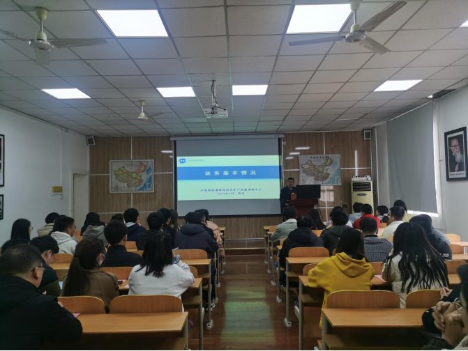 宣讲会伊始,西安矿产资源调查中心人事部乔莉主任向在场学生放映单位宣传片。向同学们展示了调查中心的概况、发展历程、行业优势等。并在宣传片播放完毕后给在场学生发送了招聘简章以及岗位招聘详细情况的宣传单。鼓励在场学生到西安矿产中心进行实习,并期待大家加入他们的大家庭。