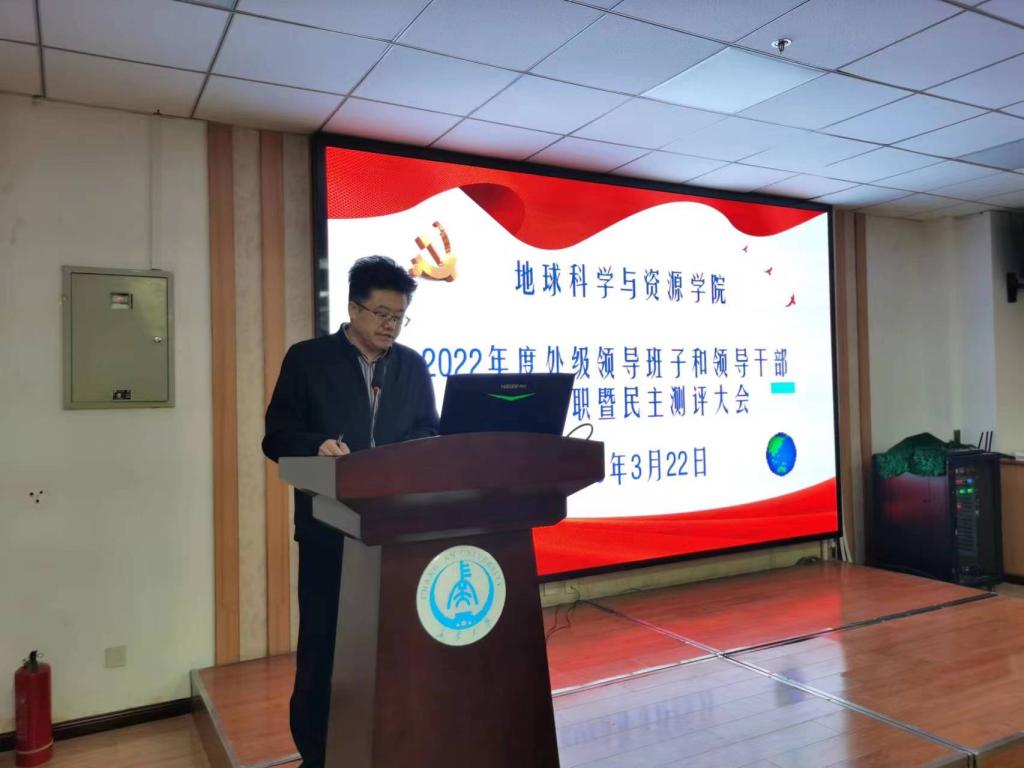 2023年3月22日下午,我院在雁塔校区地学大厦三楼学术报告厅召开了2022年度处级领导班子和领导干部考核述职暨民主测评大会。学院全体处级领导干部和教职工共106人参加大会。大会由院长李荣西主持。