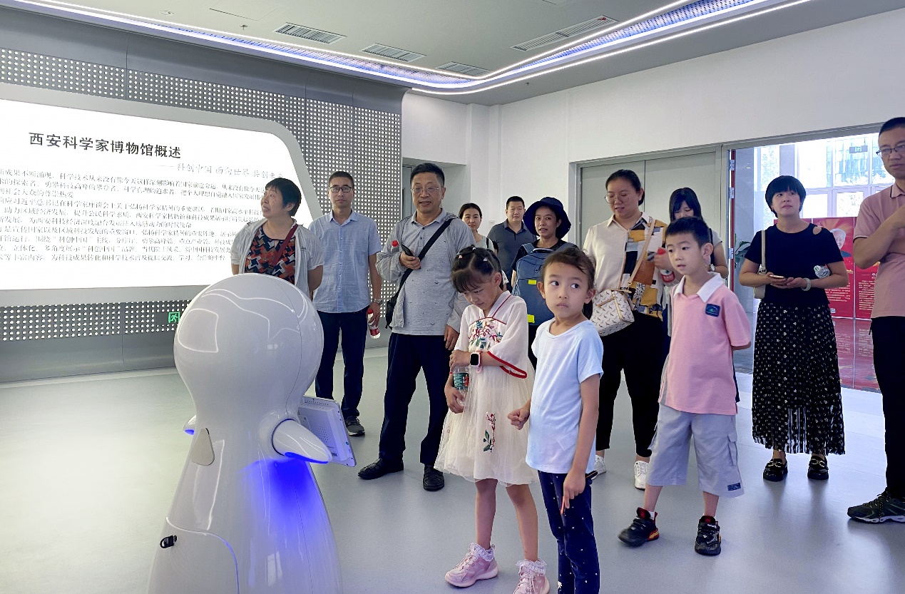 7月4日下午,我院机关实验党支部一行来到西安科学家博物馆参观学习,开展实地研学主题党日活动。支部党员和我院重点实验室部分群众教师及小学生一同参加活动。在博物馆讲解机器人小博的带领下,大家参观了博物馆,多角度了解了“科创中国”品牌、当代院士风采、新中国科技发展史、科技成果向现实生产力转化的进程等丰富内容,近距离感受了西安20余家高校和企业科技成果与产品的魅力。参观过程中,大家不时驻足观看,交流参观体会。