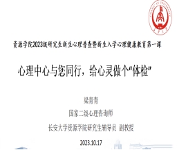 2023年,教育部等部委将加强学生心理健康工作上升为国家战略。为贯彻落实中共教育部党组关于《高等学校学生心理健康教育指导纲要》(教党2018〔41〕号)文件精神,准确了解和把握我院2023级研究生新生的心理健康状况,切实提高心理干预工作的主动性和准确性,促进学生健康成长与发展。2023年10月17日晚7点,麻豆网