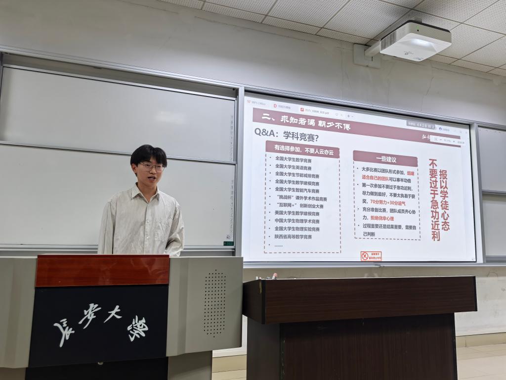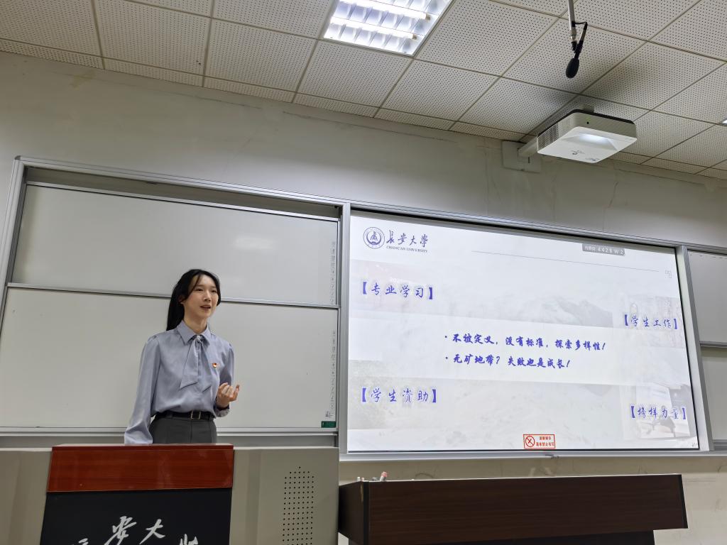 为深入学习宣传贯彻党的二十届三中全会精神和全国教育大会精神,落实新时代立德树人工程,充分发挥朋辈榜样示范引领作用,营造奋发向上的校风学风,帮助广大学生树立科学成才观,激励学生把爱国情、强国志、报国行自觉融入为中国式现代化建设的奋斗中,4月11日19点,我院在北校区WT1101教室举办“爱国奋斗勇担当·榜样引领共成长”长大之星宣讲活动。学院党委副书记许晨、团委副书记樊惠彬出席活动,2024级全体本科生聆听了宣讲。院团委书记巩昌盛主持活动。