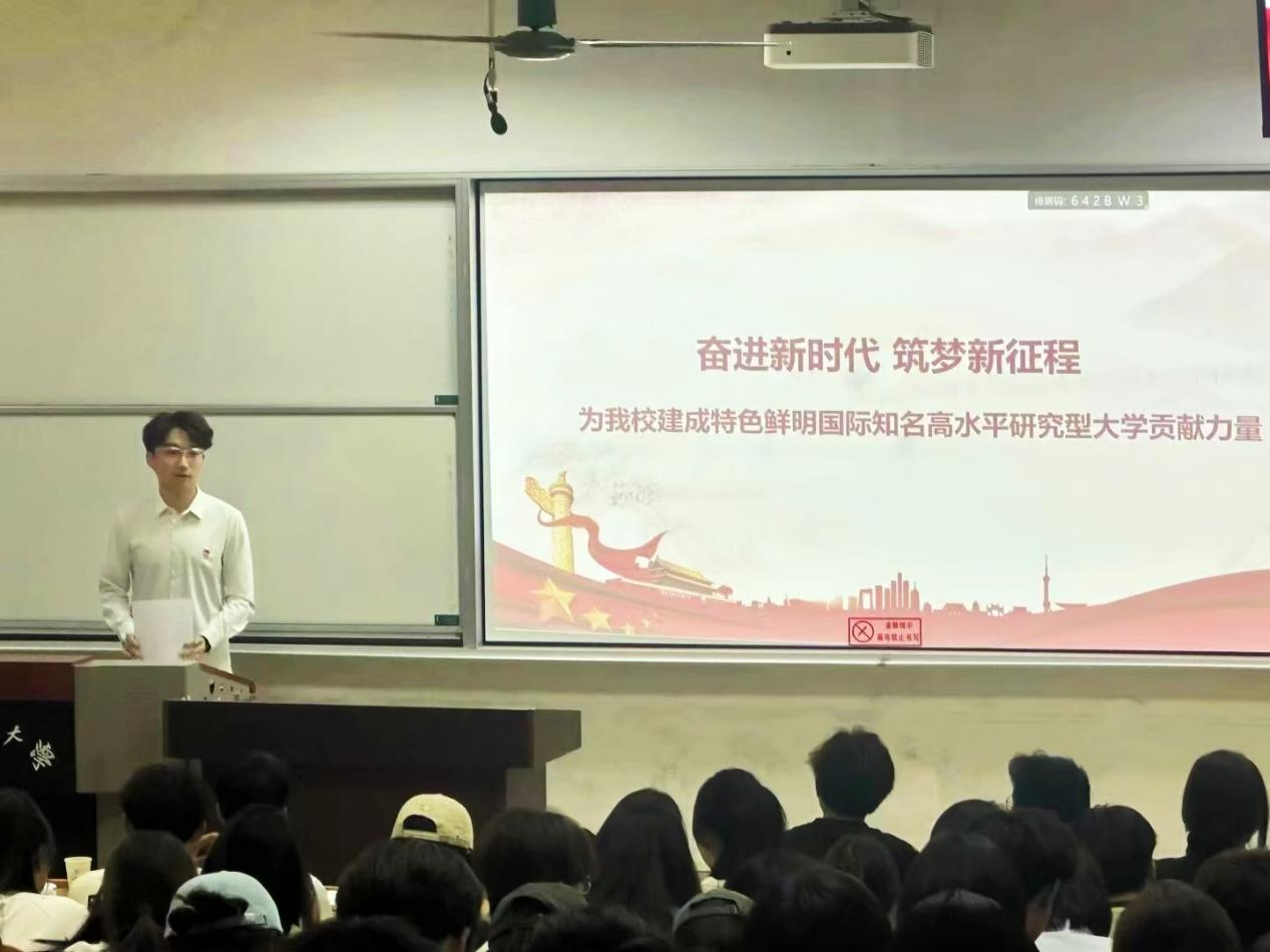 在北校区WT1102教室召开专题宣讲会。学院党委书记黄喜峰,学生工作办公室主任黎皛,团委副书记张凤、樊惠彬出席会议,各年级学生代表共同参会,会议由学院党委副书记许晨主持。