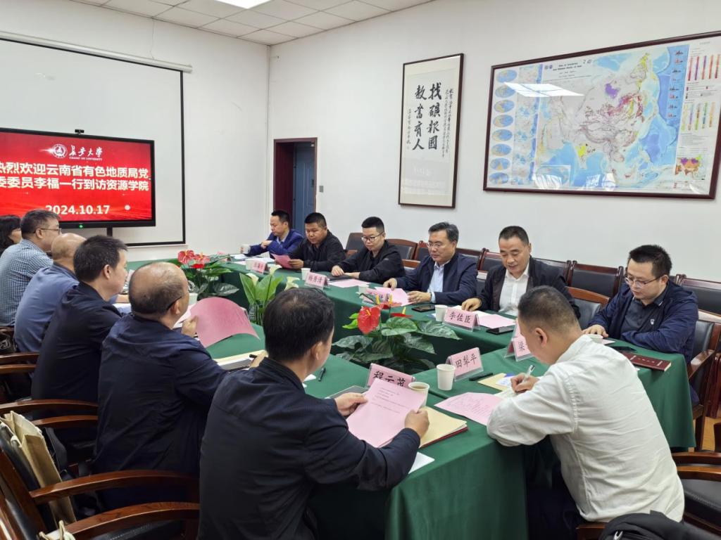 2024年10月17日上午,云南省有色地质局党委委员李福一行7人到访麻豆网 ,麻豆网 院长温汉捷、副院长李佐臣、副院长杨秀清矿床教学研究所所长张海东、邓小华教授和自然资源部新能源矿产与资源信息工程技术创新中心办公室主任张磊、研究生辅导员梁青青参加了座谈。座谈会由李佐臣副院长主持。