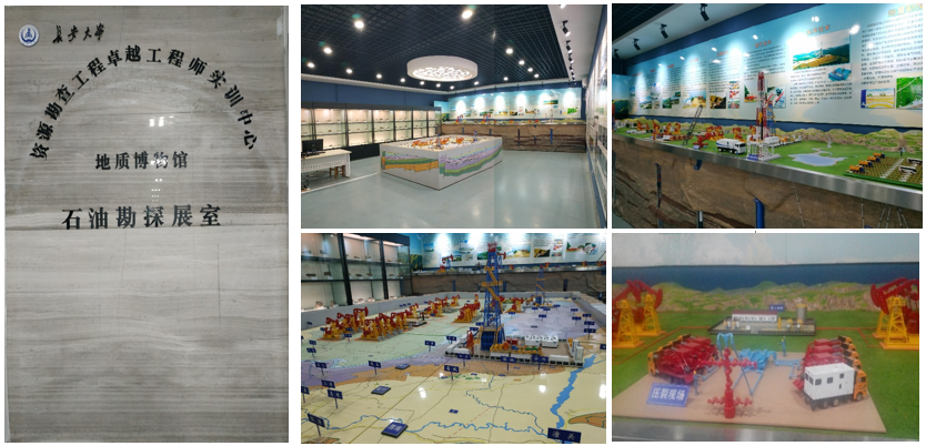 地学博物馆展出有大量与油气勘探开发有关的岩石及矿物珍贵标本,可供教学使用。资源勘查工程(油气)专业实践训练中心,配备了丰富的实验测试条件及教学设施与模型,可供油气勘探、开发及钻井教学与科研使用。