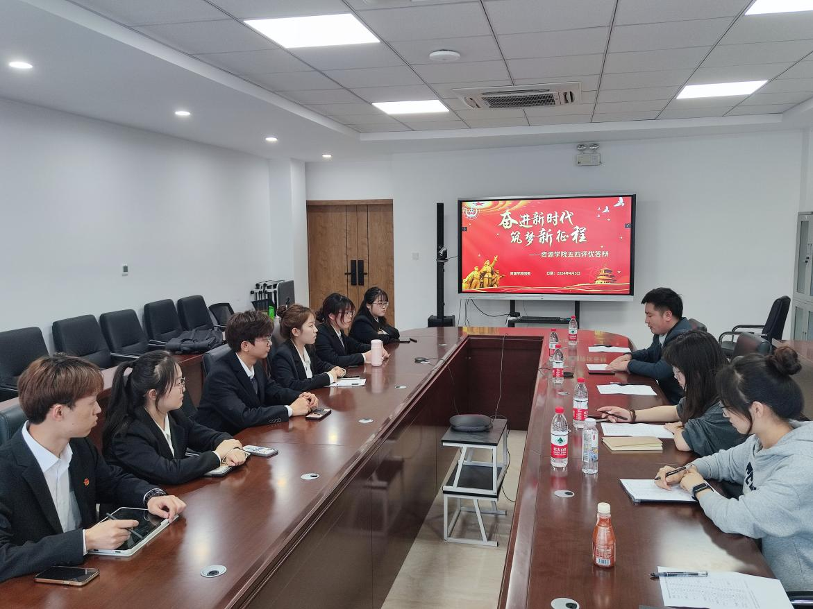 4月3日14时30分,我院在北校区学生社区二楼会议室举办2023-2024五四评优答辩活动。学院党委副书记武永江,院团委书记巩昌盛,院团委副书记张凤、时胤淇、研究生兼职辅导员罗高佳、院学生会副主席宋文琪等参加活动。
