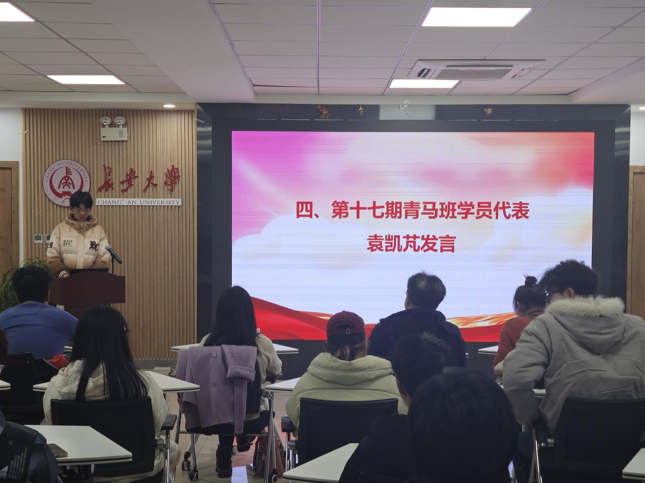 第十七期青马班学员代表袁凯芃发言。他表示将会严格要求自己、认真参加学习,在学习中不断提升自我综合素质,为深入推进中国式现代化贡献力量。