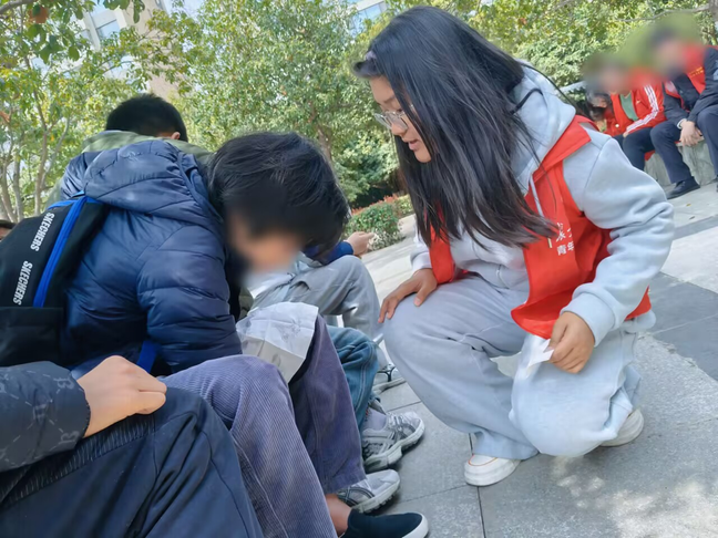 组织志愿者赴拉拉手特教中心开展"爱心助力·筑梦成长"志愿服务活动。为帮助儿童更好参与校园运动会,志愿者们通过动作示范、一对一指导等方式,在户外带领孩子们进行跳远专项训练。完成50次跳远练习后,志愿者们组织孩子们进行休整,并利用间隙开展趣味互动,帮助缓解运动疲劳。活动有效提升了儿童的肢体协调性与运动自信心,志愿者们用专业素养和耐心陪伴传递了社会温暖,展现了青年学子扶弱助残的责任担当。