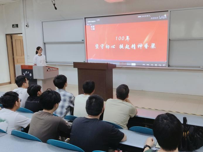 活动第一部分通过观看《一句誓言,跨越百年》主题短片,以影像叙事为引,串联起革命历史片段与新时代奋斗画面。通过历史与现实的时空对话,展现红色血脉如何在岁月长河中绵延不绝,让同学们对红色精神的发展脉络与深厚内涵有了更为直观且深刻的认知。