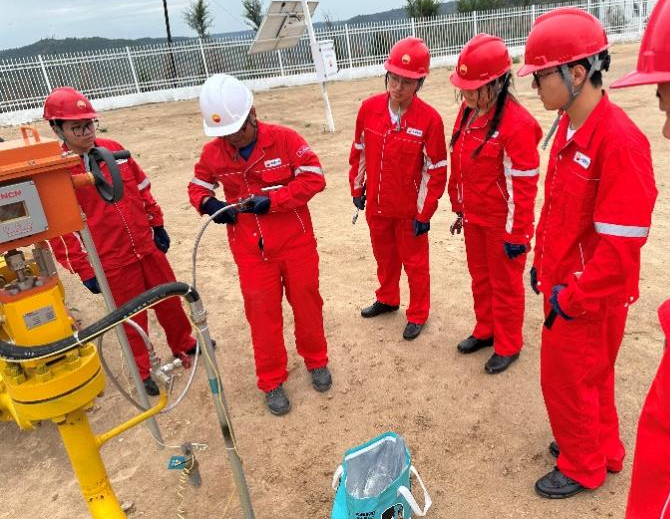 培训过程中,学员们热情高涨,求知欲强烈,积极投身于各项学习活动。在天然气采集环节,学员们聚焦现场培训中提出的实际问题各抒己见、激烈交流,在观点交锋中激发创新思维,众多具有个人见解的解决方案应运而生。学员们巧妙运用所学知识,提出了合理的工艺方案,不仅深化了对理论知识的理解,更显著提升了实际操作技能,生动诠释了学以致用的学习理念。