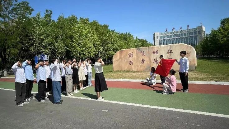 为迎接中国共产党建党103周年华诞,全面贯彻落实习近平新时代中国特色社会主义思想和党的二十大精神,2024年6月29日10时,我院本科生第二党支部在北校区校训石处举办迎“七一”暨新党员入党宣誓活动,党支部书记黎皛和支部全体学生党员、预备党员参加。活动由支部组织委员王琦主持。