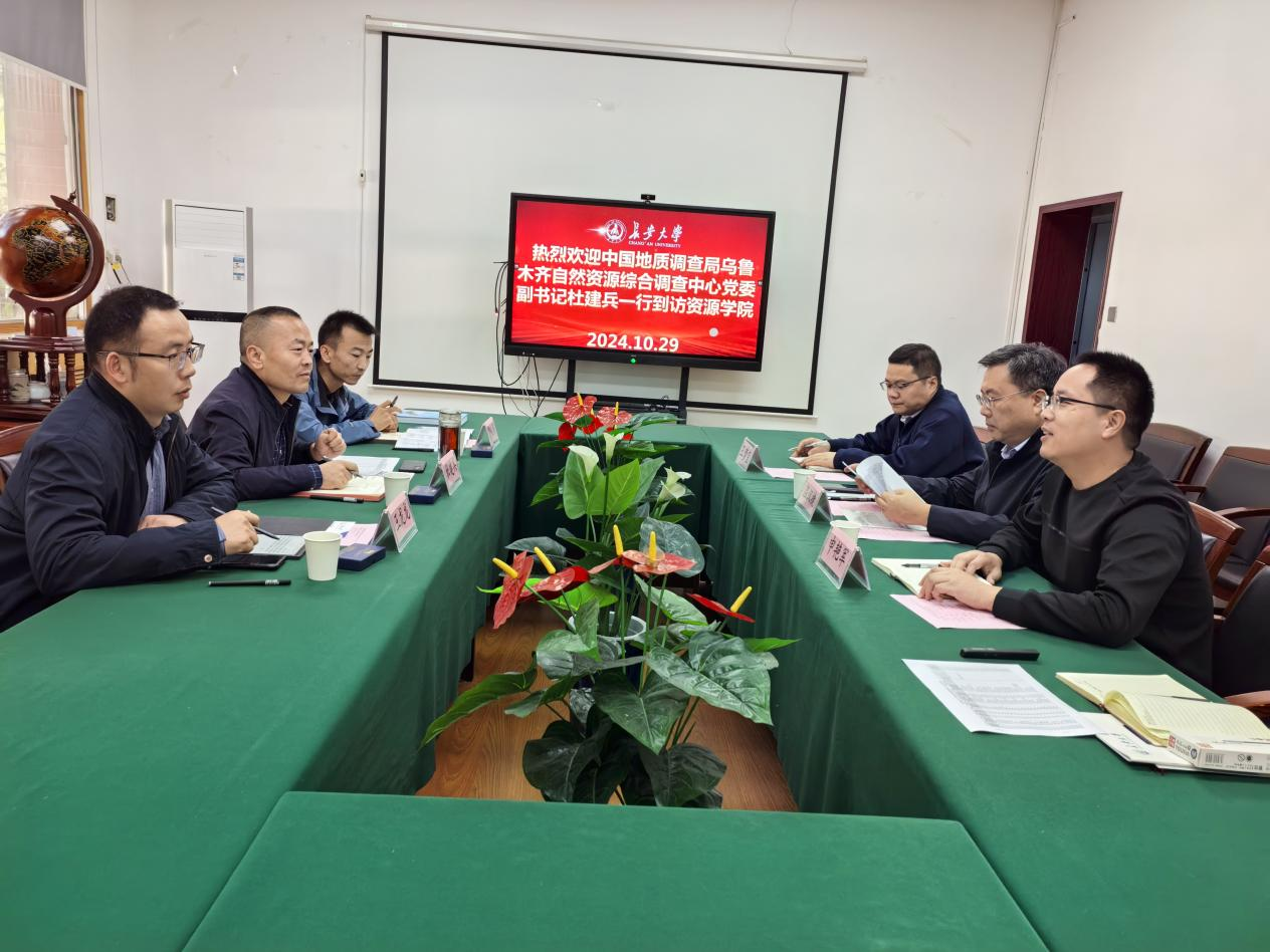 2024年10月29日上午,中国地质调查局乌鲁木齐自然资源综合调查中心党委副书记杜建兵带队到我院座谈并开展专场招聘。麻豆网 院长温汉捷主持座谈。